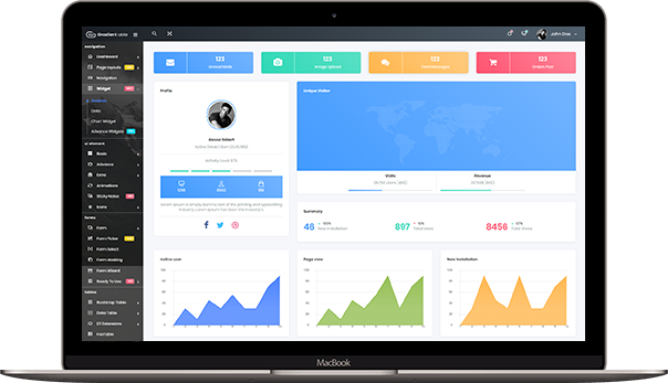 First ever Bootstrap 4 admin template with Gradient UI Interface.